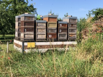 Meine Bienenvölker stehen ab Ende des Sommers und bis ins beginnende Frühjahr auf unserer Streuobstwiese inmitten 70 bis 80 Jahre alter Hochstamm Apfelbäume